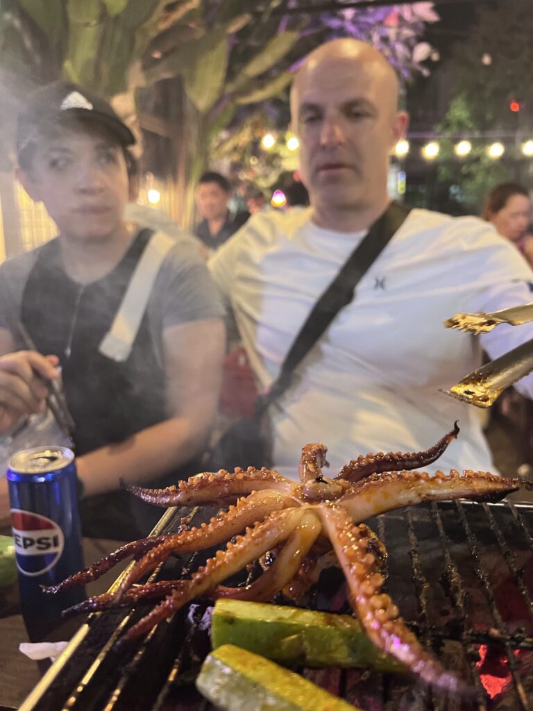 One of the most comical parts of the evening was watching Mike, a man who despises seafood, very graciously grill octopus, squid, and other questionable sea creatures for the rest of us. He had absolutely no desire to eat any of it himself, which made it an even greater act of service.