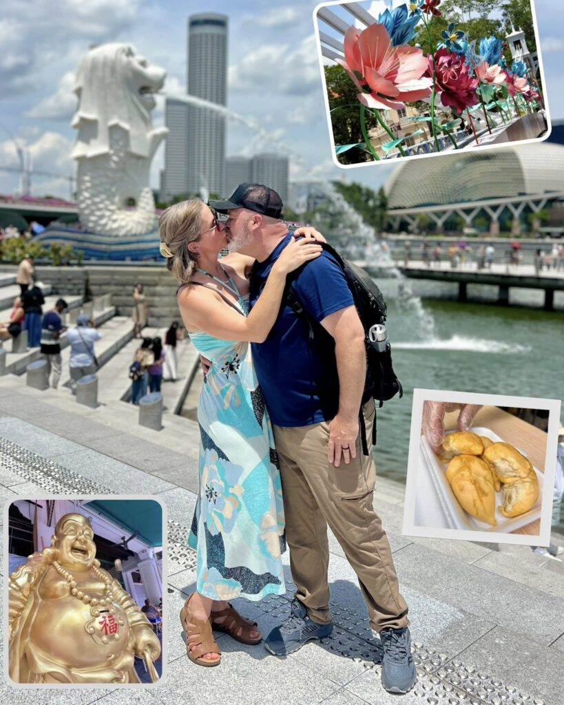 We wandered through Merlion Park, where the half-lion, half-fish Merlion has become the city’s symbol. The fish body represents Singapore’s origin as a fishing village. The lion head comes from “Singapura,” meaning Lion City in Sanskrit.