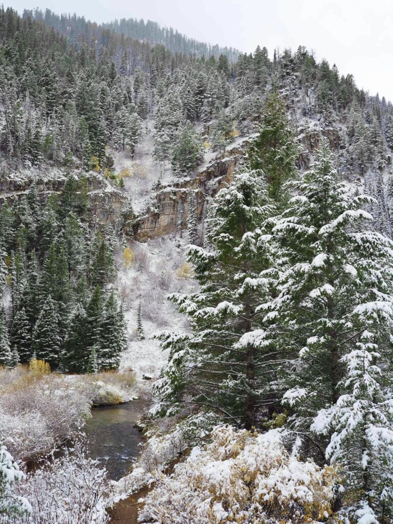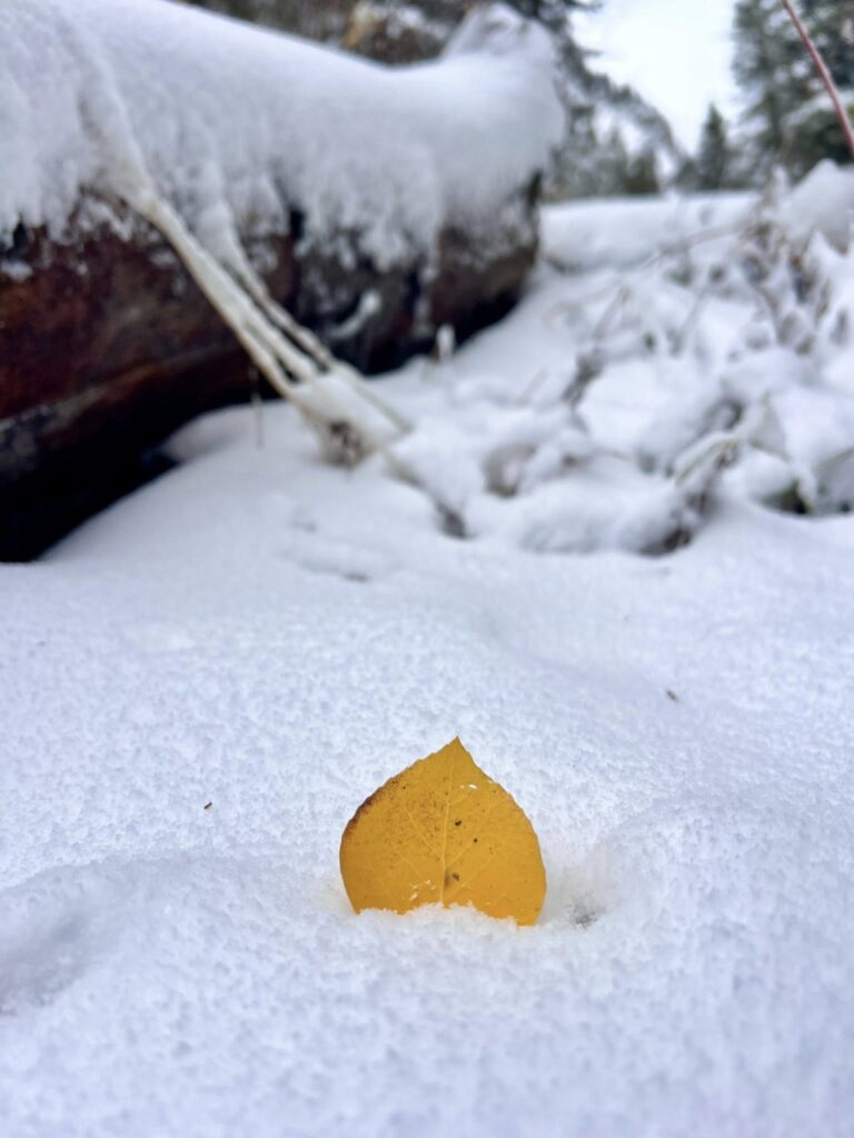 Everything was blanketed in white. The world felt quieter. Muted. Our footsteps were dampened by fresh snow. Our voices instinctively softened. And yet, some bright yellow aspens still glowed against the white landscape.