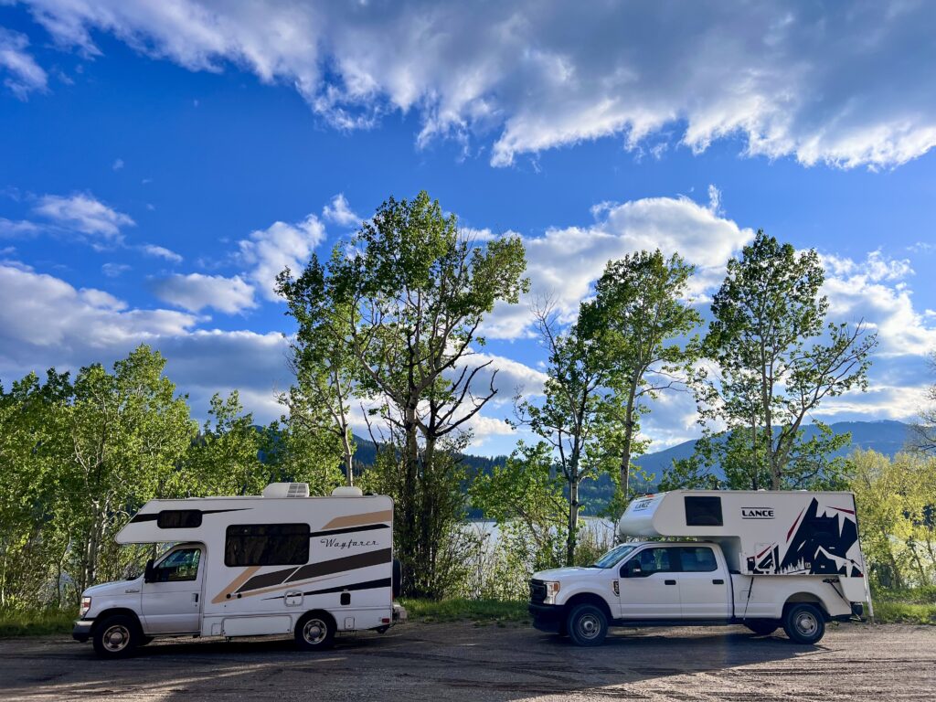 Vance scouted out the spot and sent me a pin. I rolled up to find Opt Out already tucked in, and I parked Dustcatcher right behind. Primitive shoreline camping is allowed in many spots around the reservoir – our favorite! But if you prefer a few more amenities, there are also designated US Forest Service and private campgrounds scattered along Palisades.